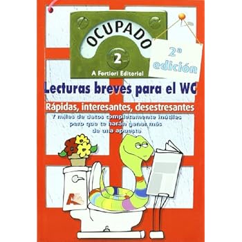 Probablemente habrá personas que consideren de mal gusto leer poesía o textos de autores de contrastada categoría literaria, en el baño, esto es cuestión de intereses personales y no vamos a entrar a discutir, pero está claro que, dado el ritmo de vida que llevamos, es un rincón ideal para el reposo y probablemente el único lugar donde estamos a solas en todo el día y a veces ni eso. Estudios contrastados indican que a lo largo de nuestra vida invertimos aproximadamente unos ocho meses y medio en el servicio, expedidos de diez en diez minutos. ¿No es este libro una buena forma de aprovecharlos? 160 pág. Esta publicación tiene el único objetivo de contribuir a la buena salud intestinal de sus lectoras y lectores, a la par que se divierte y, por lo tanto, ganas en calidad de vida. Basándonos en el conocimiento empírico adquirido a lo largo de los años, sabemos que la lectura en el baño es de corta intensidad, con pequeñas ráfagas de texto, en esta segunda entrega hemos seleccionado textos para estancias algo más largas y para visitas extremadamente fugaces.Tapa blanda=160 páginas. Editor=A Fortiori Editorial; Edición: 2 (1 de octubre de 2010). Colección=Ocupado. Idioma=Español. ISBN-10=8496755355. ISBN-13=978-8496755352. Valoración media de los clientes=Sé el primero en opinar sobre este producto. Clasificación en los más vendidos de AmazonHumorAntologíasFicción contemporánea=nº82.397 en Libros (Ver el Top 100 en Libros) .zg_hrsr { margin: 0; padding: 0; list-style-type: none; } .zg_hrsr_item { margin: 0 0 0 10px; } .zg_hrsr_rank { display: inline-block; width: 80px; text-align: right; } n.° 681 en Libros > n.° 815 en Libros > Literatura y ficción > n.° 11832 en Libros > Literatura y ficción >.
